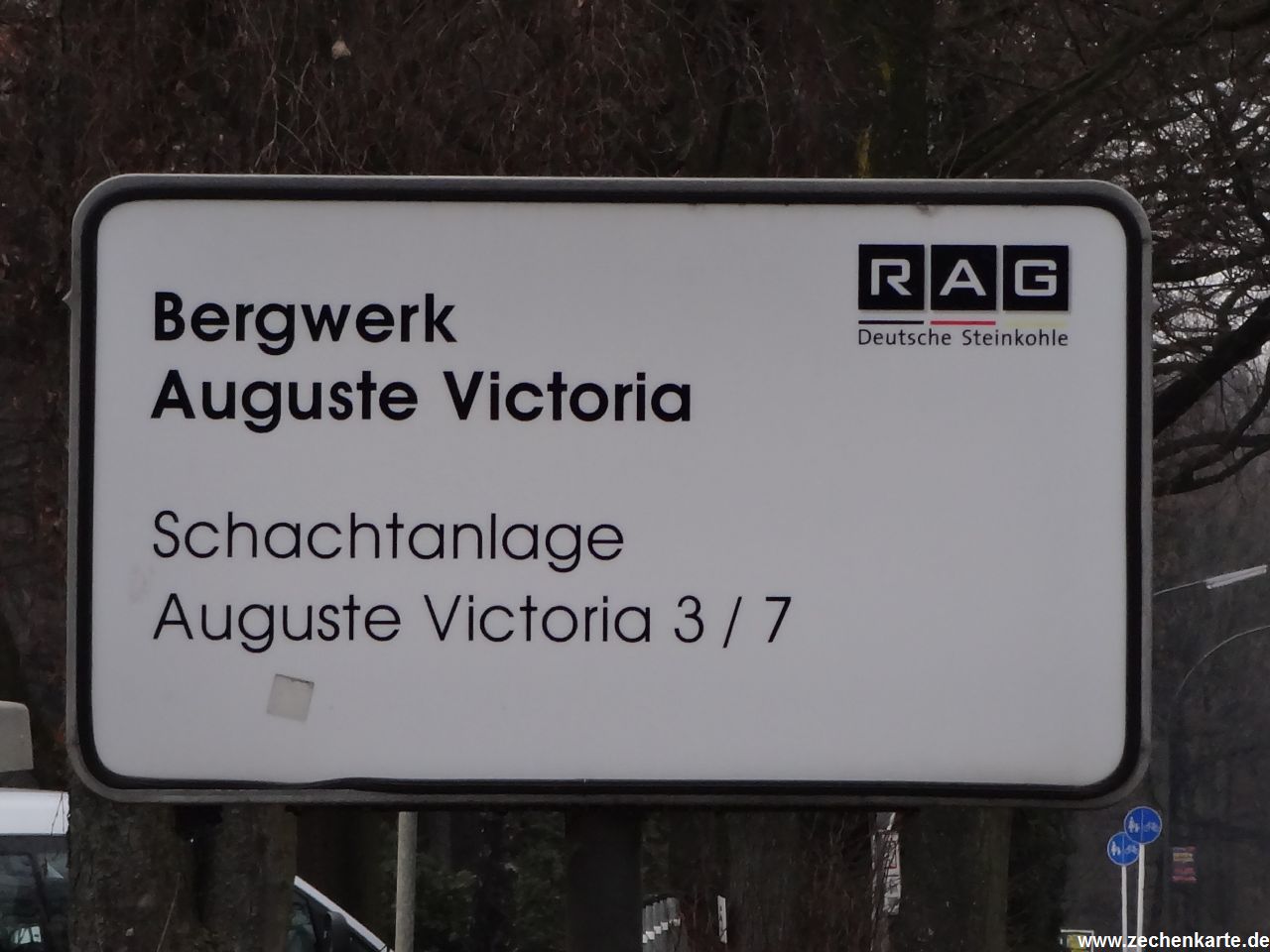 Schild von Auguste Victoria Schachtanlage 3-7 in Marl in 2013. Eigenes Bild.