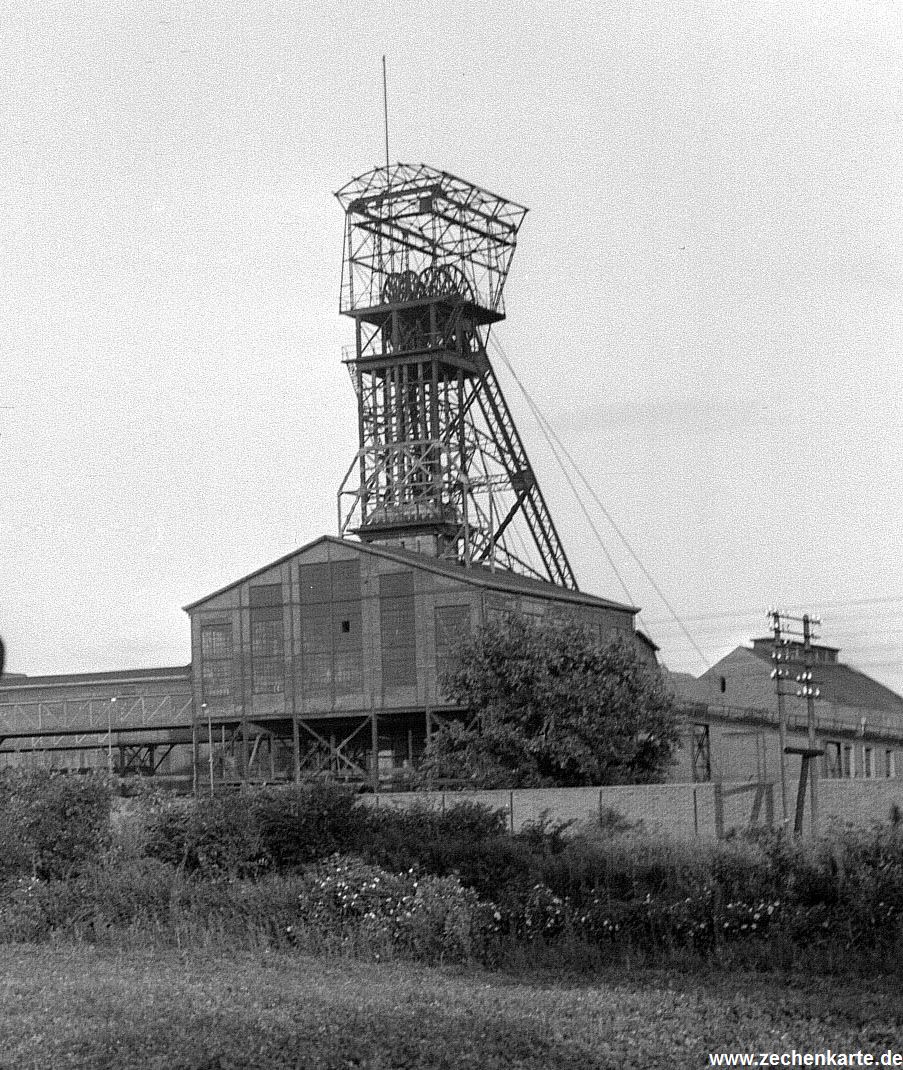 Fördergerüst von Fürst Leopold Schacht 1 in Dorsten in 1954. Eigenes Bild.