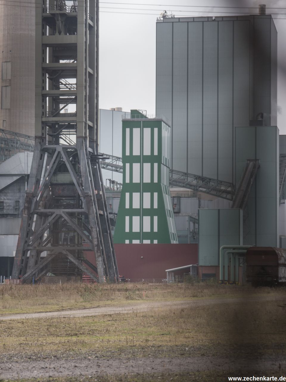 Fördergerüst von Walsum Schacht 1 (links) und Fördergerüststumpf von Schacht 2 (mitte) in Duisburg in 2015. Vielen Dank an Thomas Depta.