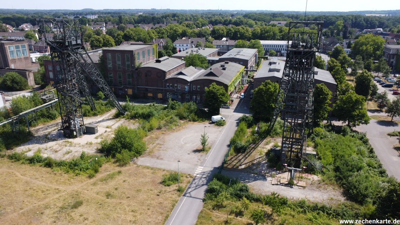 Fördergerüste von Auguste Victoria Schacht 1 (rechts) und Schacht 2 (links) in Marl in 2022. Vielen Dank an Marko Kruse.