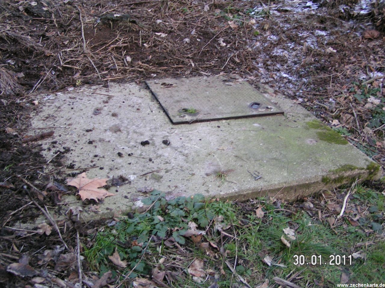 Fundament am Standort des ehemaligen Kesselhauses der Zeche Neu-Iserlohn in Bochum in 2011. Die Vermutung, dass es sich um die Schachtabdeckung des Wetterschachtes 1 gehandelt hat, hat sich nicht bestätigt. Dieser liegt weiter südlich. Vielen Dank an Christin Pflieger.