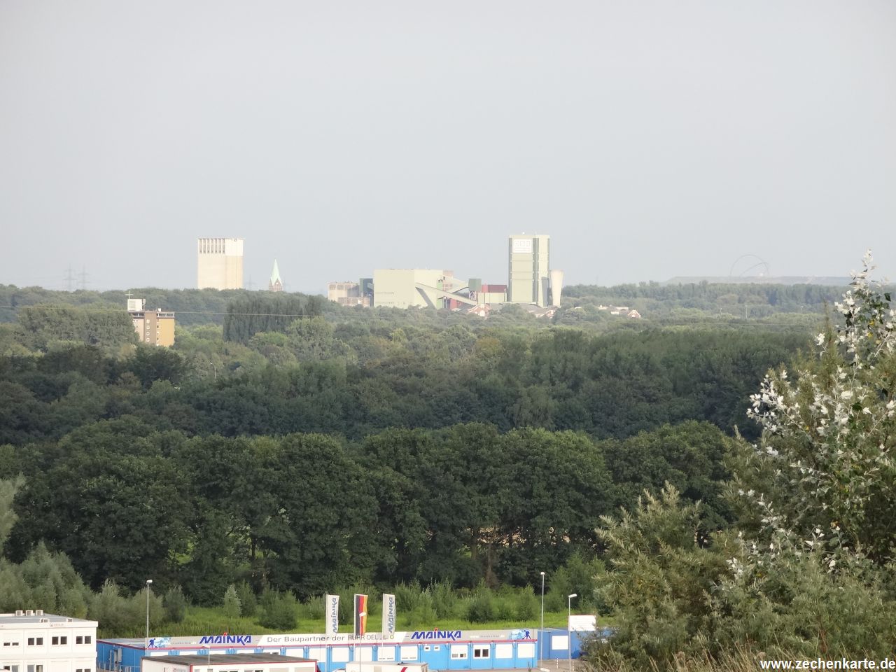 Blick von der Halde Scholver Feld in Gelsenkirchen in Richtung Südosten in 2013. In Hintergrund ist die Zeche Westerholt zu sehen. Eigenes Bild.
