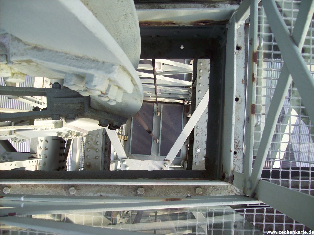 Auf dem Fördergerüst von Zollern Schacht 2 in Dortmund in 2008. Eigenes Bild.