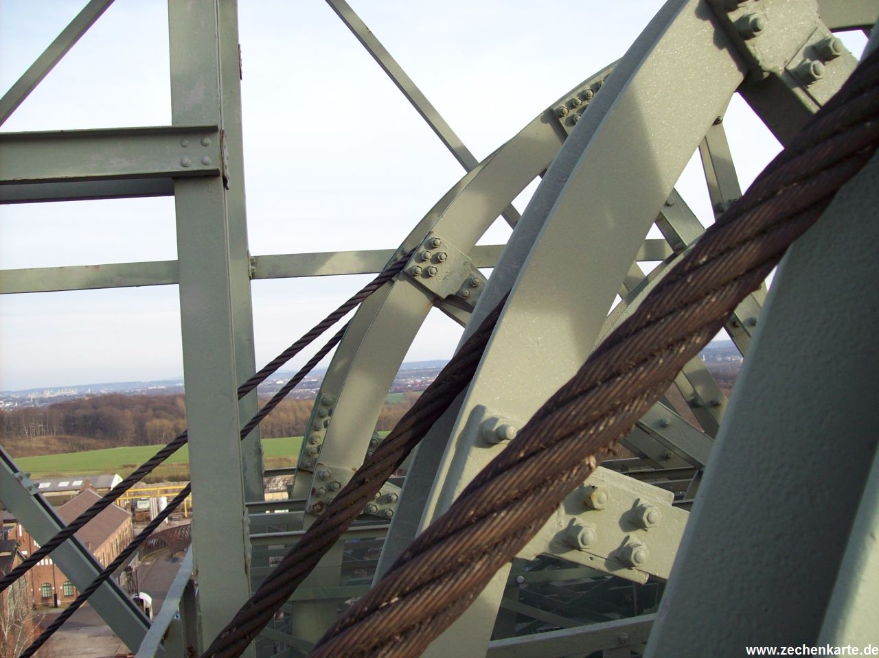 Auf dem Fördergerüst von Zollern Schacht 2 in Dortmund in 2008. Eigenes Bild.