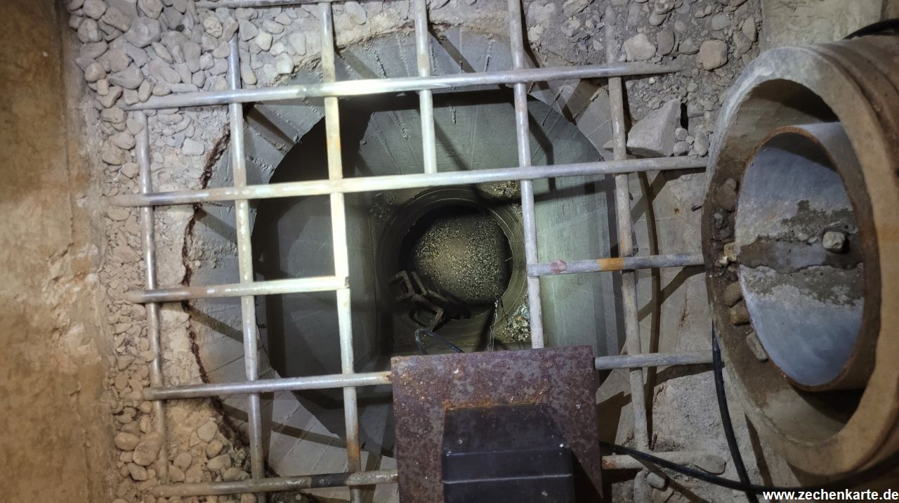 Blick in die Revisionsöffnung von Engelsburg Schacht 1 in Bochum in 2023.