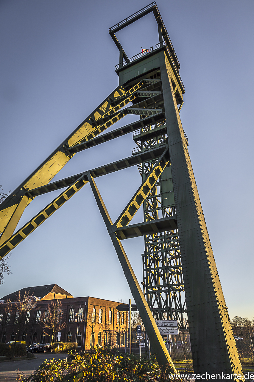 Fördergerüst von Osterfeld Schacht 3 (Paul Reusch) in Oberhausen in 2016. Bild von Rüdiger Schnick.