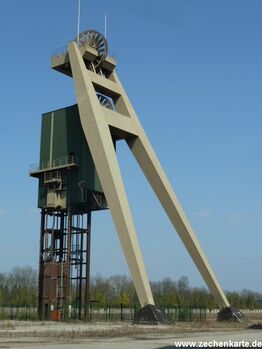 - ↑ Die Schachtlage ergibt sich aus der Bauweise des (ehemaligen) Fördergerüsts bzw. des (ehemaligen) Förderturms oder aufgrund der Teufe.