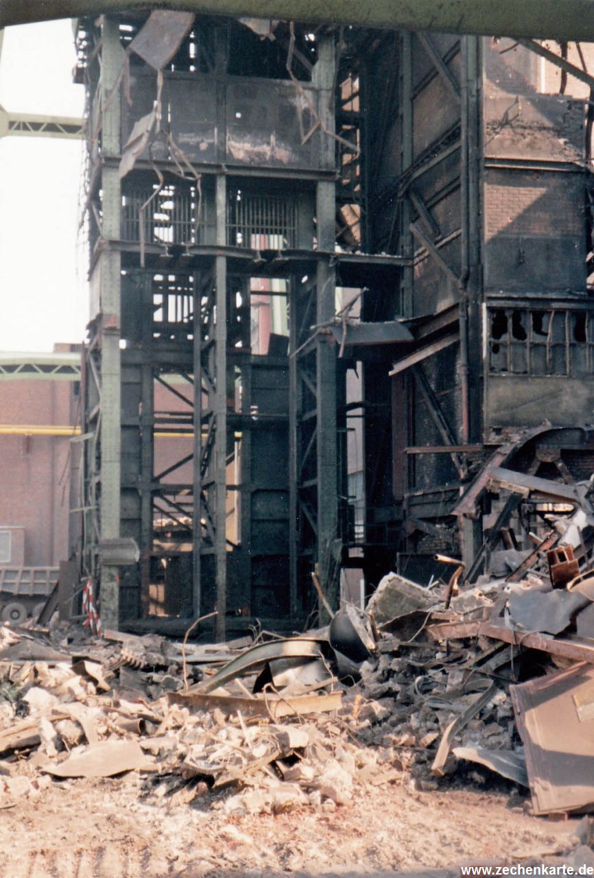 Fördergerüst von Pattberg Schacht 2 in Moers vor der Umlegung in 1998. Bild zur Verfügung gestellt von Hans-W. Penker.