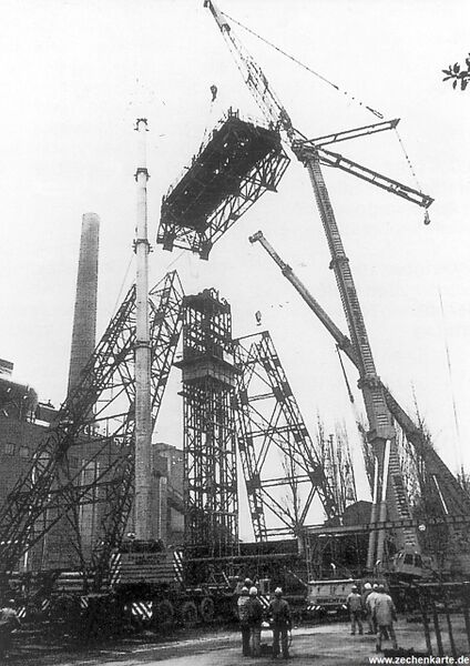 Abbruch des Fördergerüsts von Rheinpreußen Schacht 5 in Moers. Bild zur Verfügung gestellt von Hans-W. Penker.